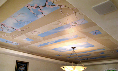 Помимо покраски и побелки для отделки потолков существуют другие варианты. Можно купить плитку из пеноплена, которая может иметь различные рельефы и рисунки. Она хорошо ложится и на старые обои, и на окрашенную поверхность. Однако использование её не везде допускается. К примеру, в ванной комнате эта плитка отклеится из-за высокой влажности.